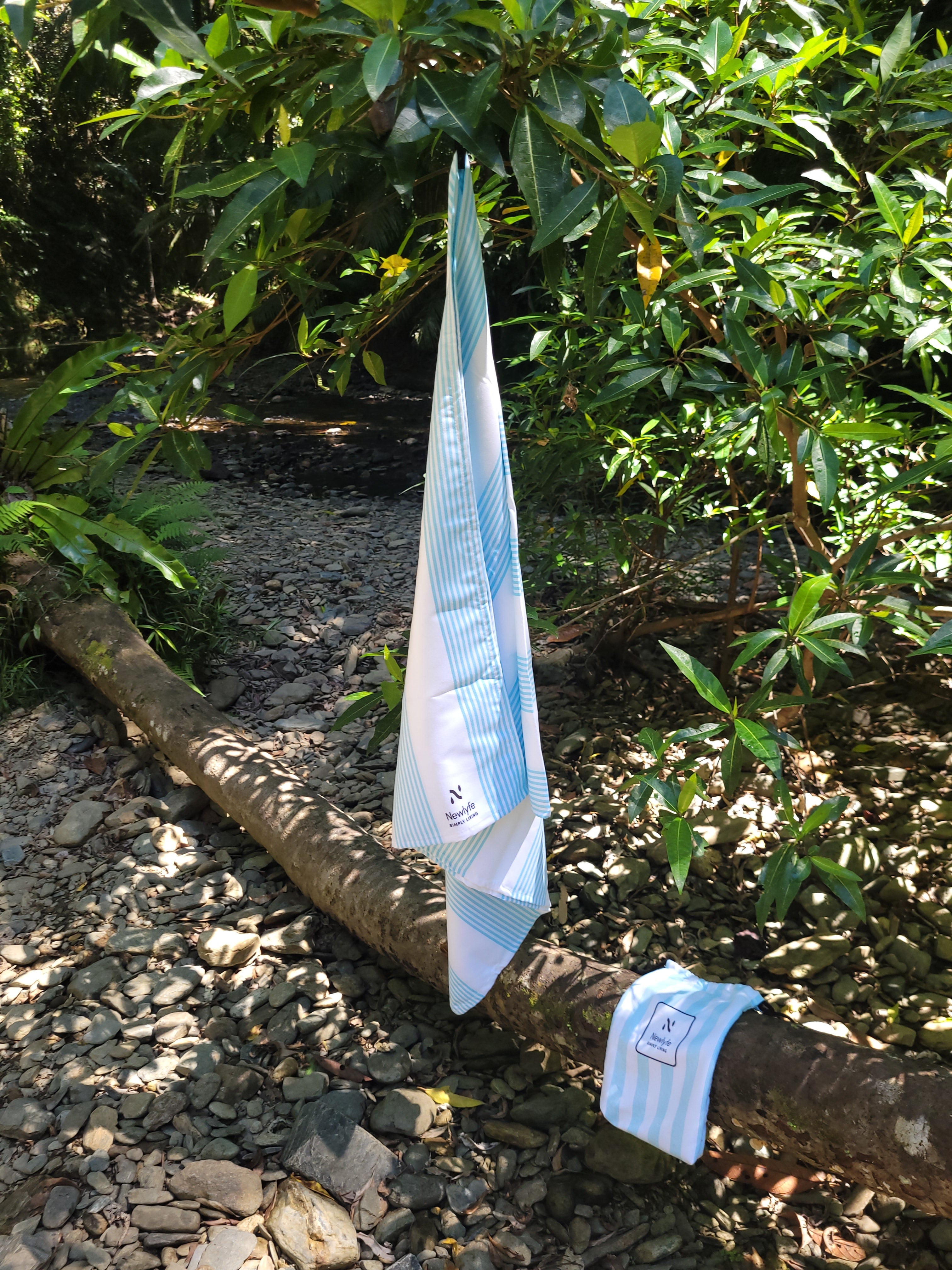 The Signature Collection takes everything you love about Newlyfe towels, sand-free, quick-dry, compact, lightweight and gives it a sophisticated twist. The Calvi Sky Blue print blends Newlyfe performance with a refined nautical look.