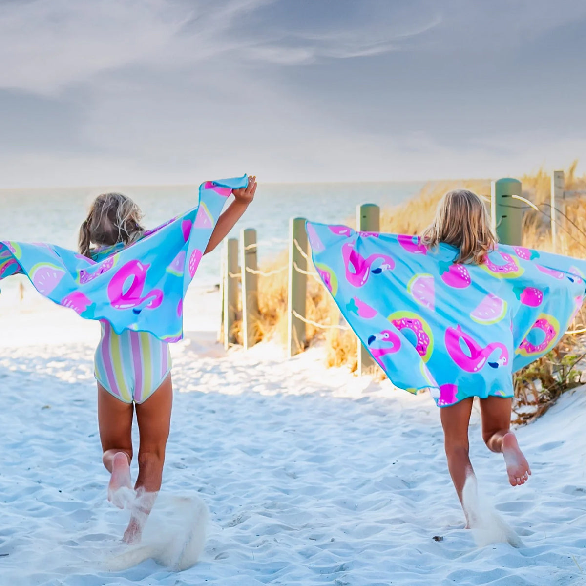 Keep the sand at the beach and out of your car, with our Sand Free Beach Towels for kids! Suede microfiber dries much quicker than cotton, has a silky soft feel your kids will love, and it makes them so compact & lightweight your kids can carry their own towel! The handy hanging loop makes them easy to hang anywhere and folding up smaller than a water bottle, they’re the perfect towel for caravan and camping, school swimming lessons and camps!